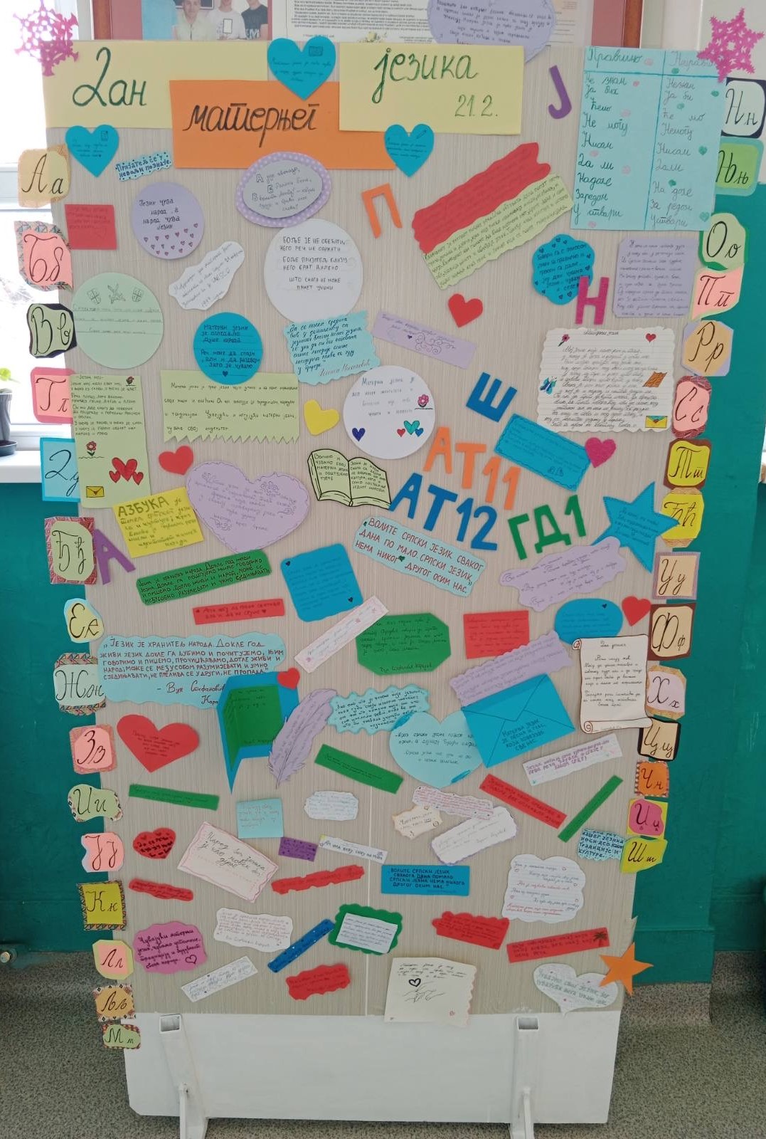 Ученици првог разреда, одељења Ат11, Ат12 и Гд1 направили су пано поводом Дана матерњег језика са наставницом српског језика Снежаном Лазић.