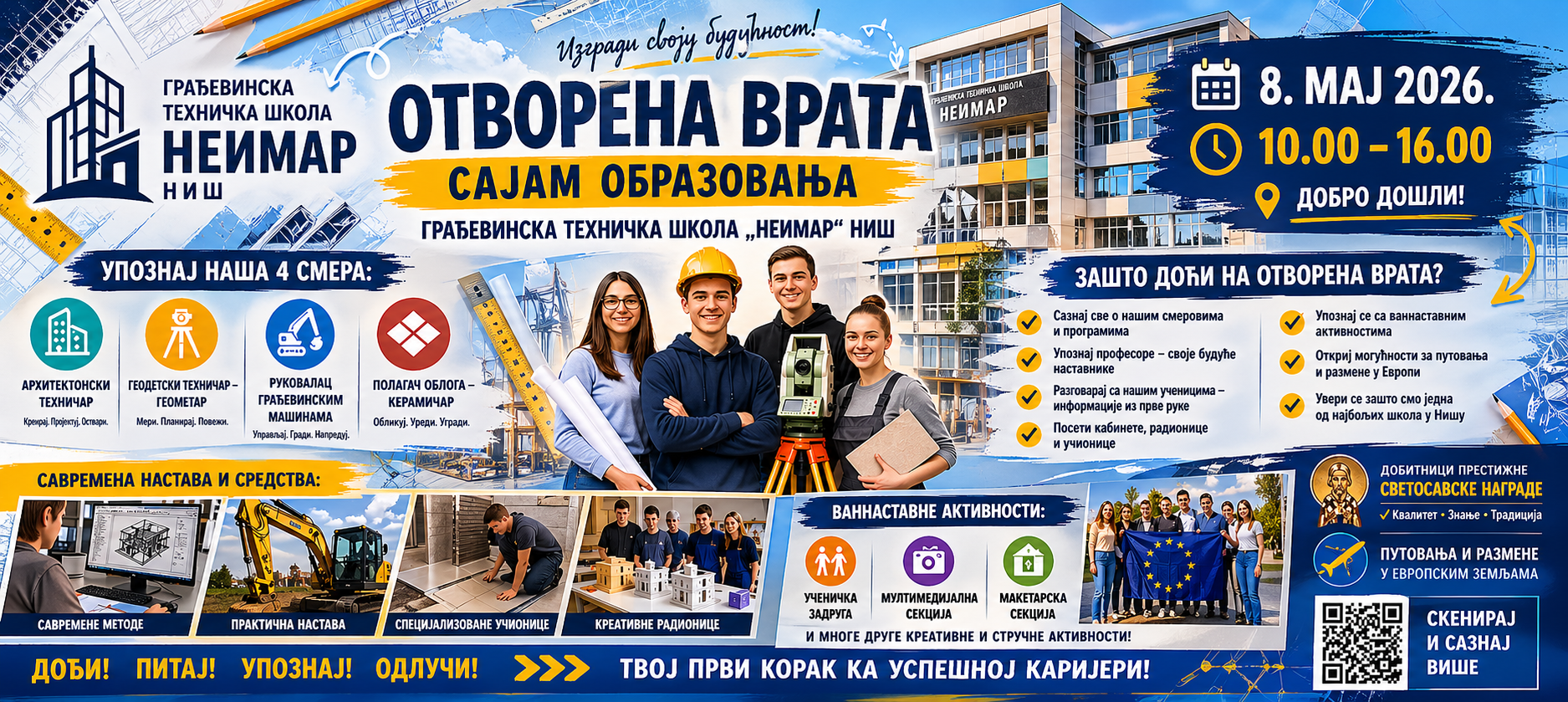 Очекујемо вас 8. маја 2026. године у Грађевинској техничкој школи „Неимар“ Ниш од 10.00 до 16.00 часова!
