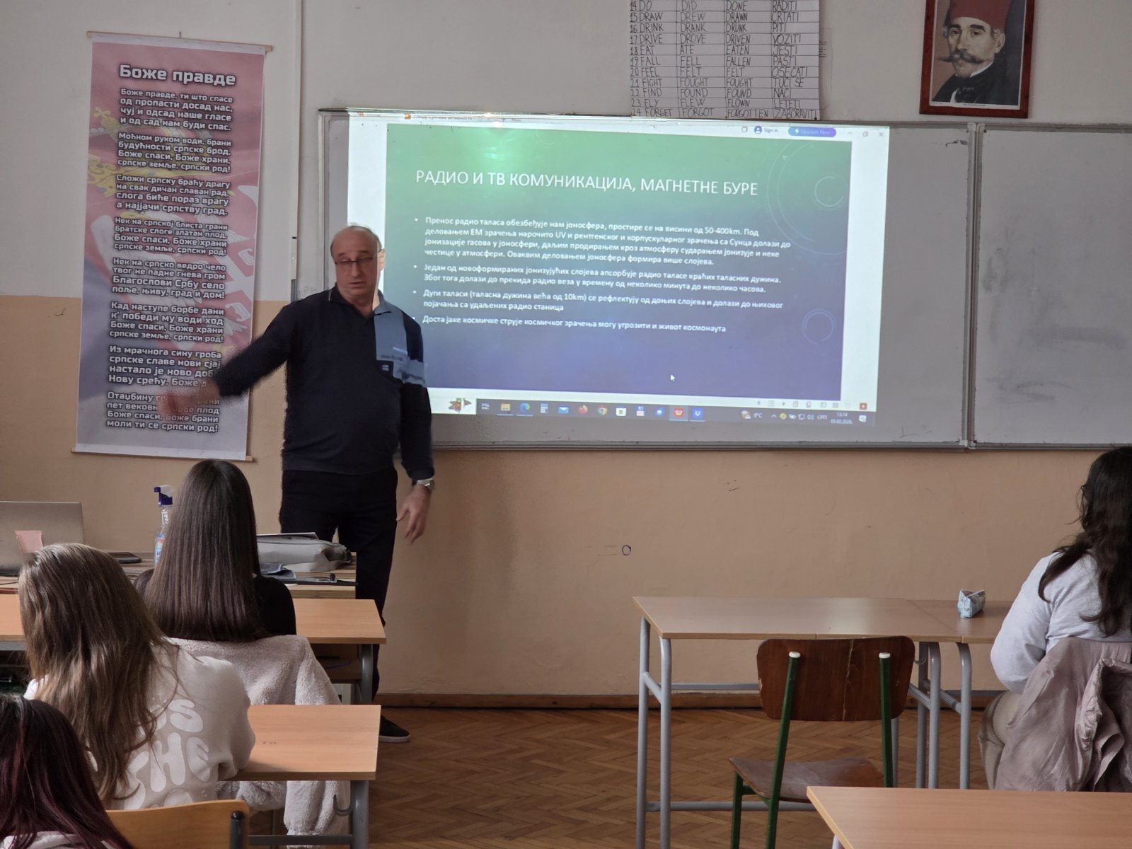 У четвртак 5. 2. 2026. године у одељењу Ат21, наставник физике Градимир Стојановић одржао је угледни час физике, којем су поред ученика поменутог одељења присуствовале и колегинице и колеге из других стручних већа. Наставна јединица УТИЦАЈ СУНЧЕВЕ АКТИВНОСТИ НА ПОЈАВЕ НА ЗЕМЉИ је веома актуелна тема и баш је зато изабрана за угледни час. Правилно одабране наставне методе, циљеви и исходи часа допринели су да ученици и наставници са пажњом прате предавање. Научили смо које активности Сунца су узрок појаве сметњи у пријему таласа у комуникацији, GPS системима и мобилним телефонима. Ученицима је привукла пажњу и презентација о  појави поларне светлости и разлози о појављивању светлости према екватору. Осим развијања свести ученика и присутних наставника о значају Сунца за живот на земљи, развијена је и свест о томе како повезати Сунчеве активности са необичним појавама на Земљи, али и како ублажити последице појачане Сунчеве активности. У краткој дискусији након часа дошли смо до заједничког закључка да је час испунио очекивања и да су испуњени сви образовно-васпитни и функционално-практични задаци који су били предвиђени, а неколико колега је изразило жељу за повезивањем, односно корелацијом свог наставног предмета са овом наставном јединицом.