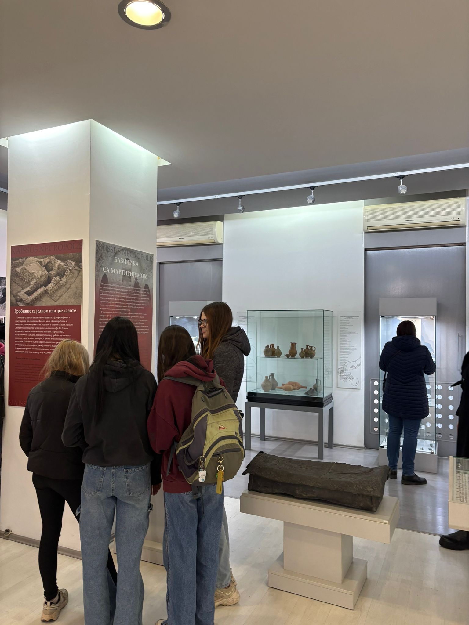 И данас смо били активни. Ученици првог разреда наше школе, одељења Ат12 и Гд1 са својим одељењским старешинама, Снежаном Лазић и Зораном Богуновић, обишли су занимљиве музејске поставке. Посетили смо Археолошку салу, Спомен-собу Бранка Миљковића и Стевана Сремца и Синагогу.